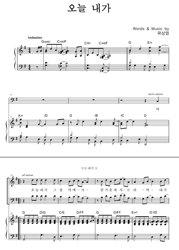 | 오늘 내가 | 성가 4부 + 피아노 반주 |