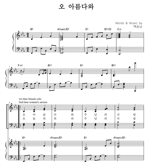 | 오 아름다와 | 성가 4부 + 피아노 반주 |