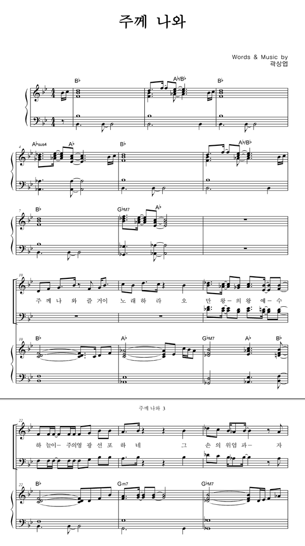 | 주께 나와 | 성가 4부 + 피아노 반주 |