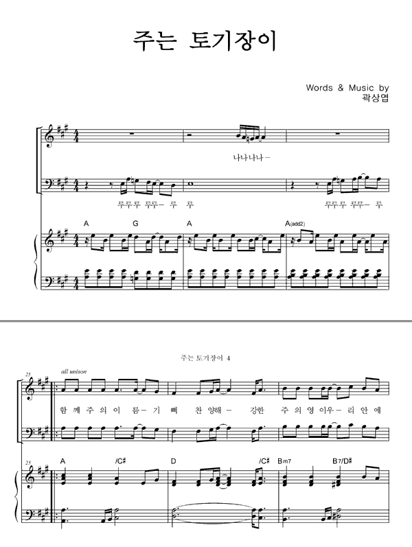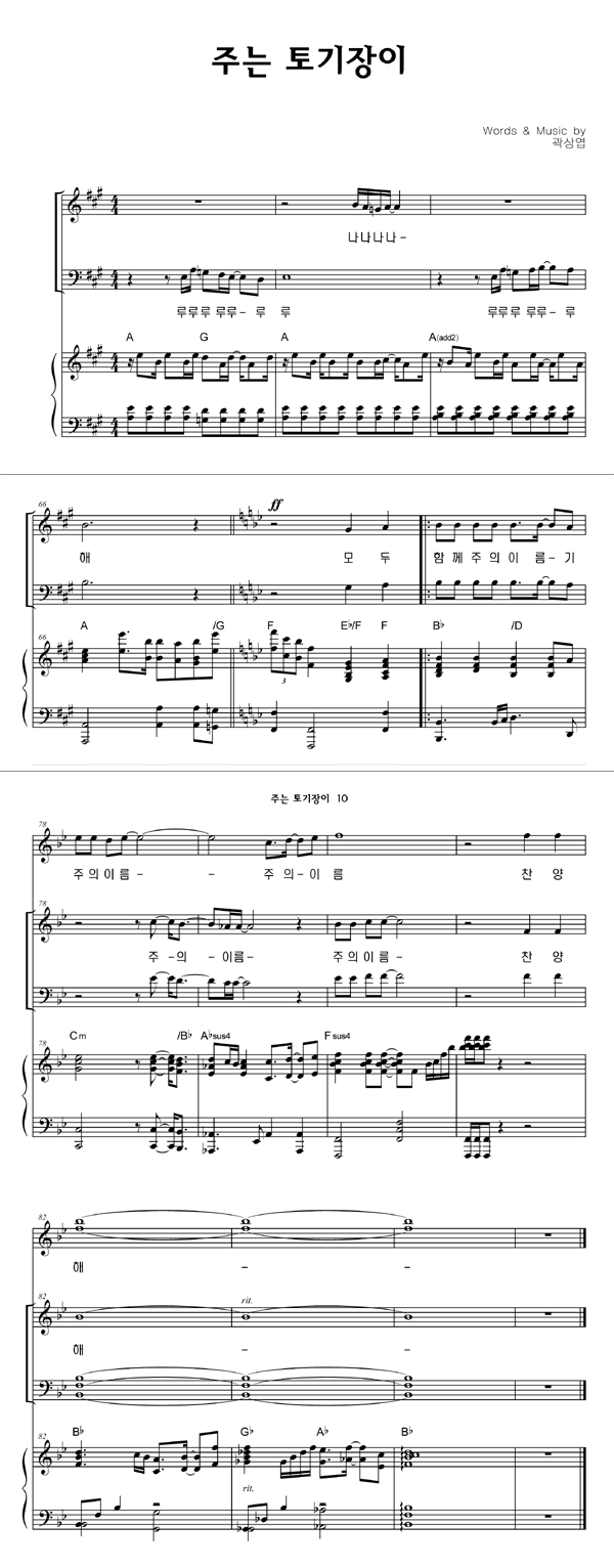 | 주는 토기장이 | 성가 4부 + 피아노 반주 |