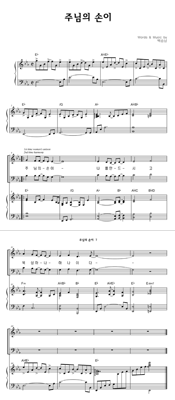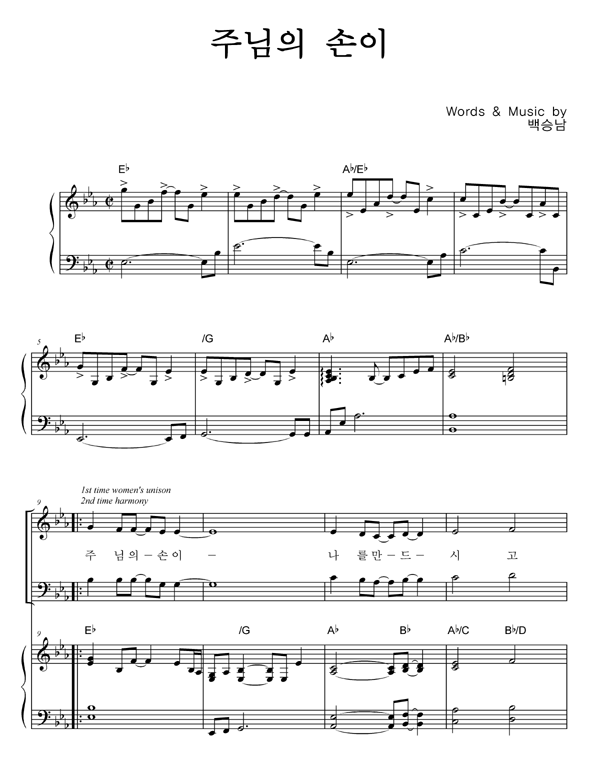 | 주님의 손이 | 성가 2부 + 피아노 반주 |