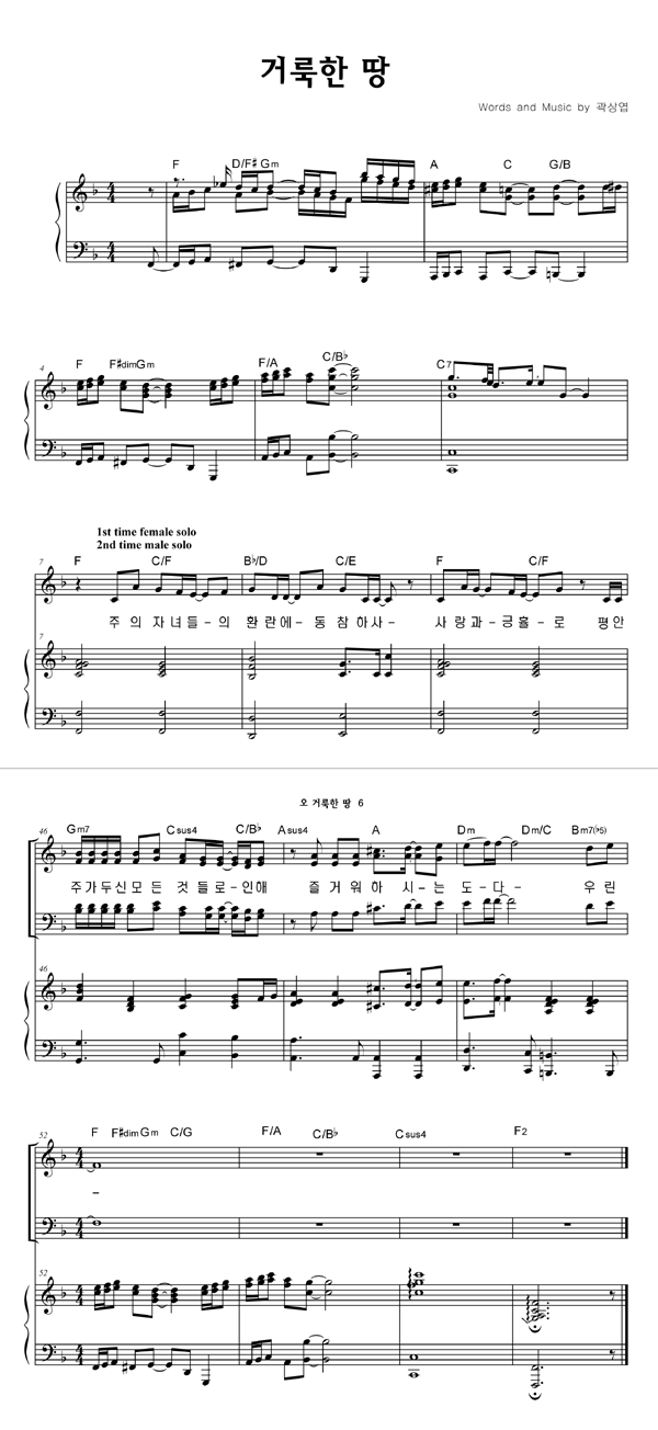 | 거룩한 땅 | 성가 4부 + 피아노 반주 |