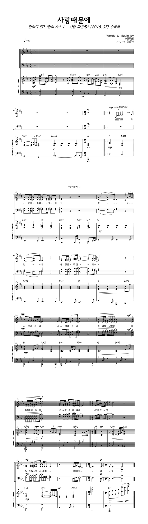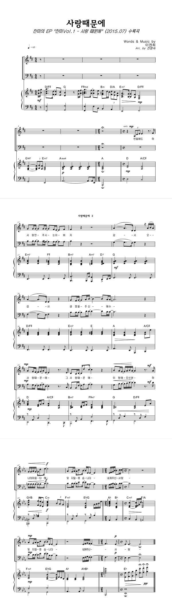 | 사랑때문에 | 성가 4부 + 피아노 반주 |