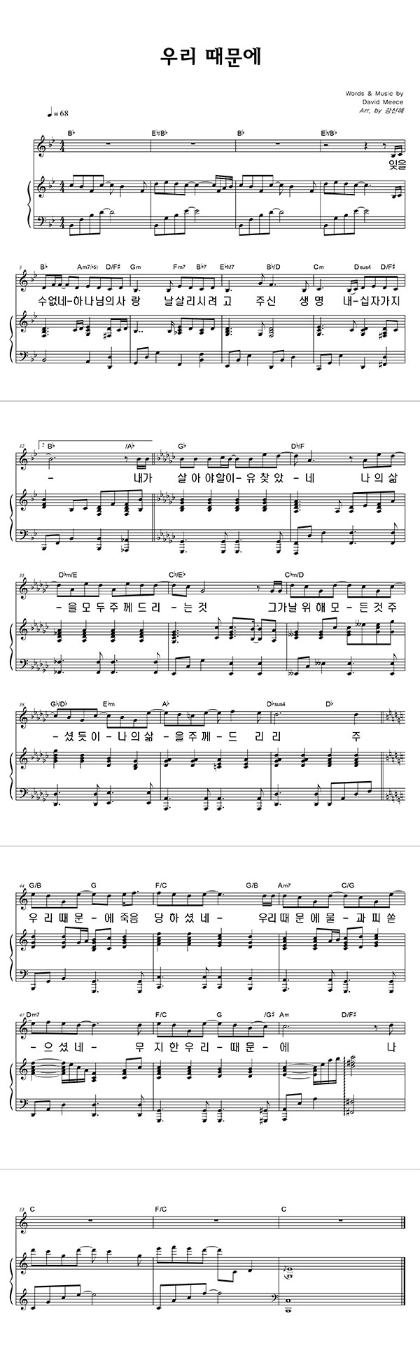| 우리 때문에 | 성가 2부 + 피아노 반주 |