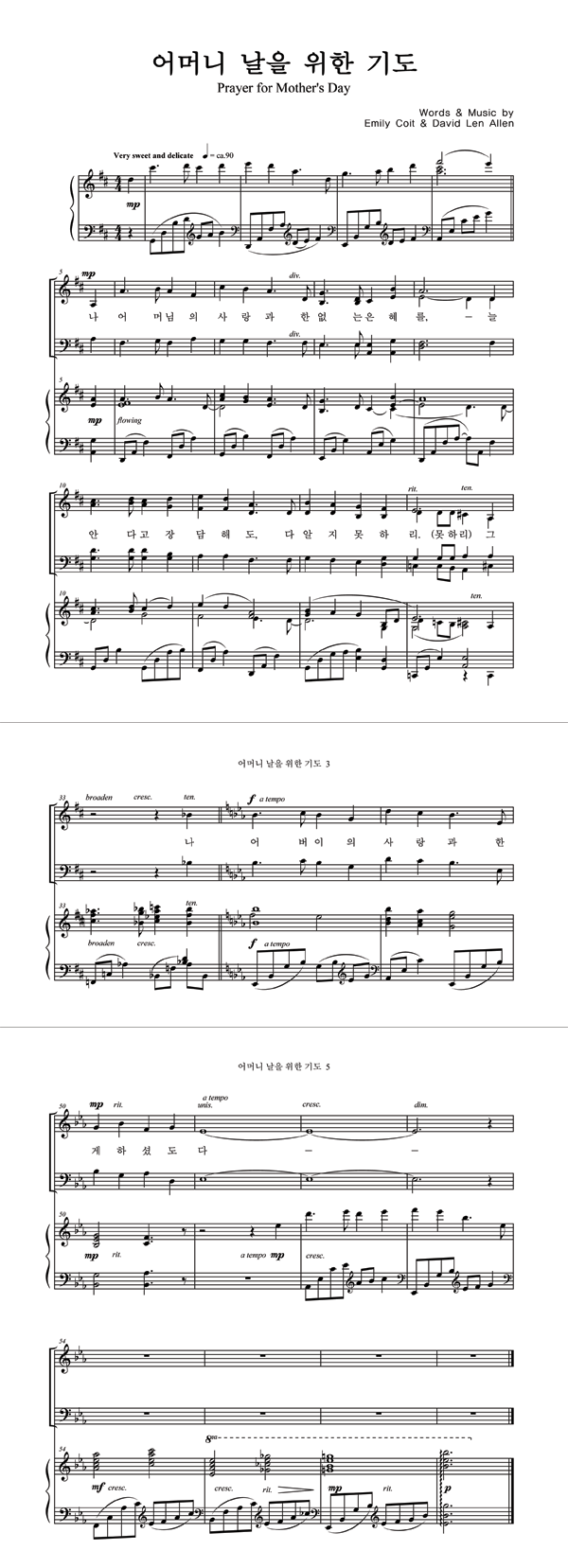 '어머니날을 위한 기도' 의 다른 악보형식