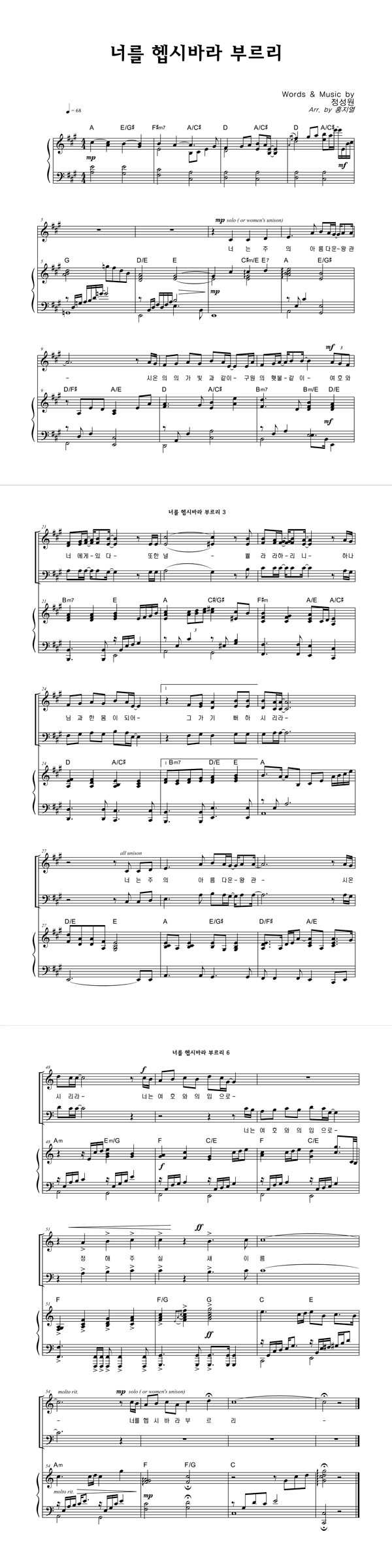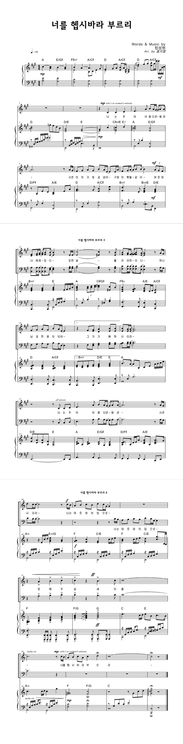 | 너를 헵시바라 부르리 | 성가 3부 + 피아노 반주 |