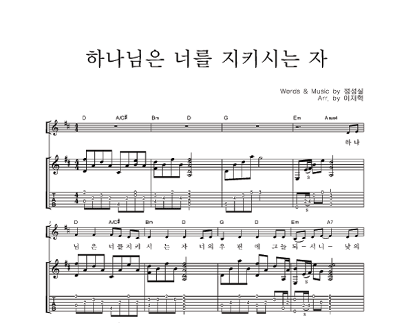 '하나님은 너를 지키시는 자' 의 다른 악보형식
