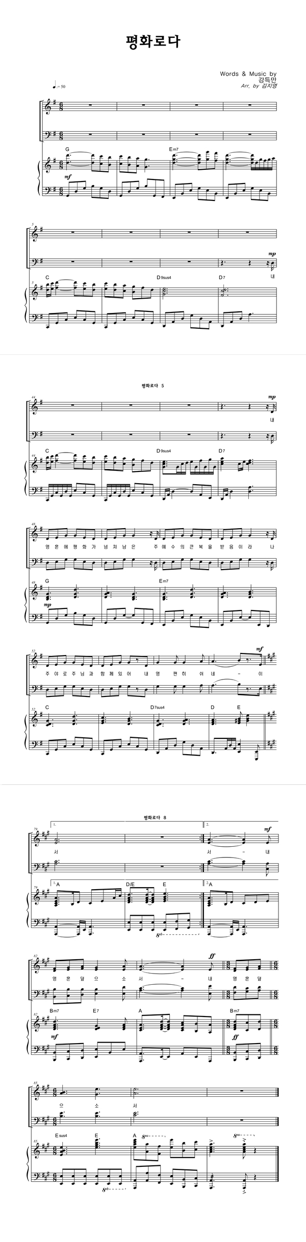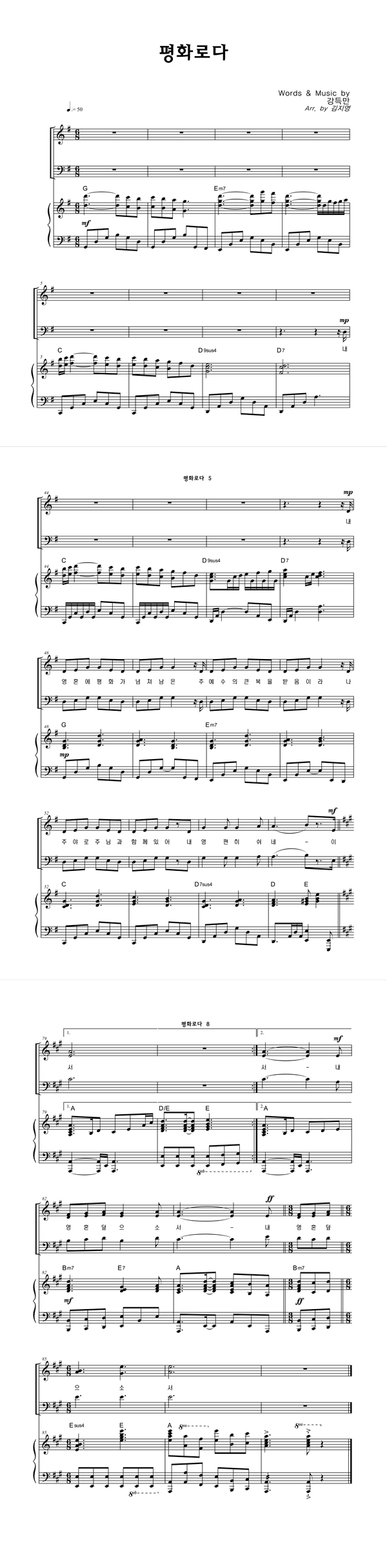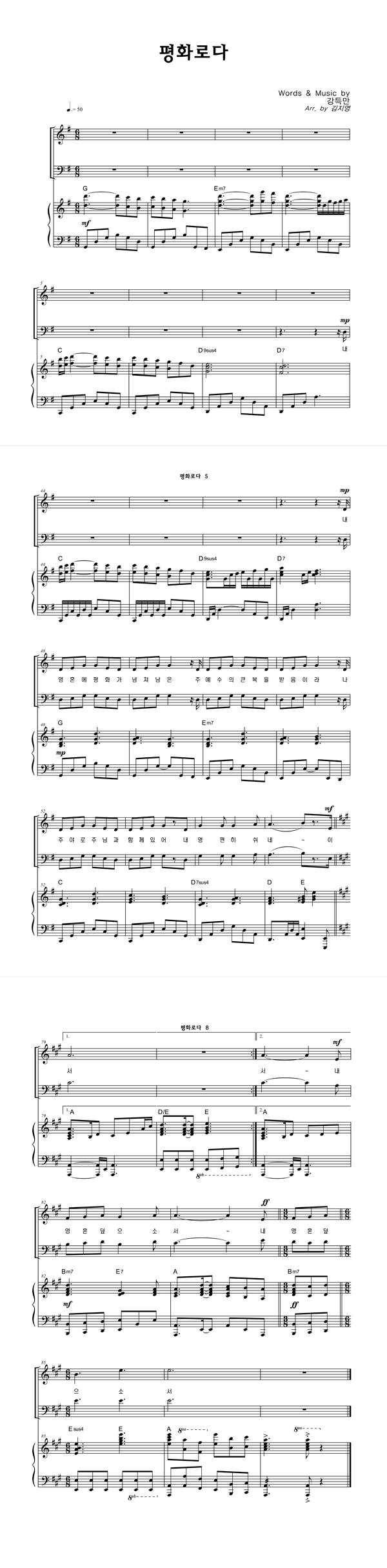 | 평화로다 | 성가 3부 + 피아노 반주 |