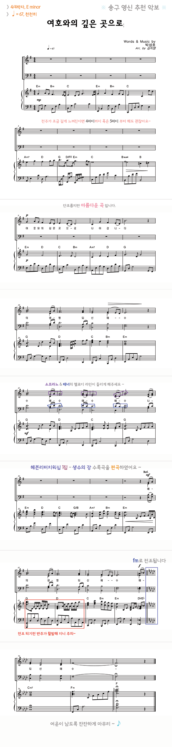 | 여호와의 깊은 곳으로 | 성가 2부 + 피아노 반주 |