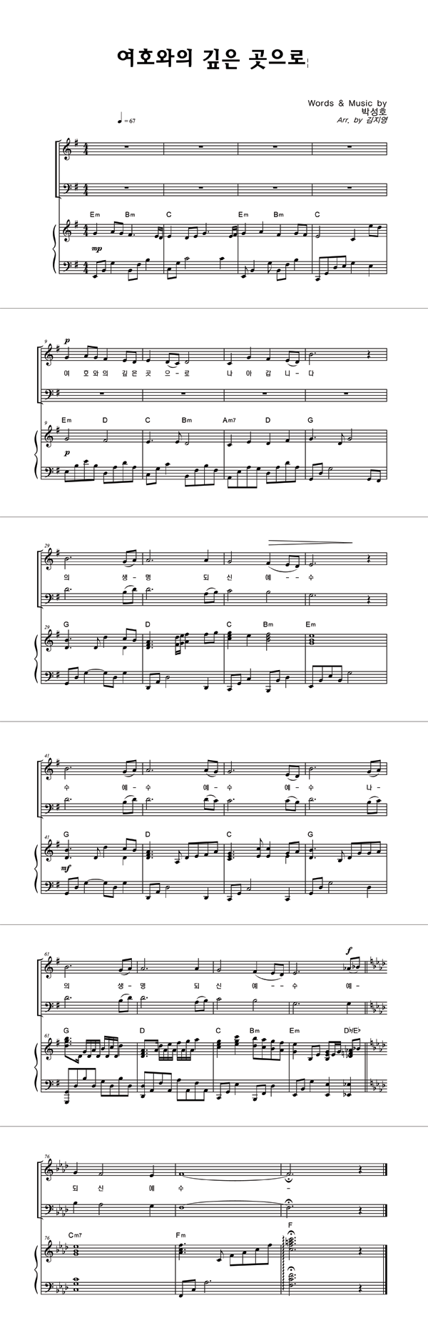 | 여호와의 깊은 곳으로 | 성가 4부 + 피아노 반주 |