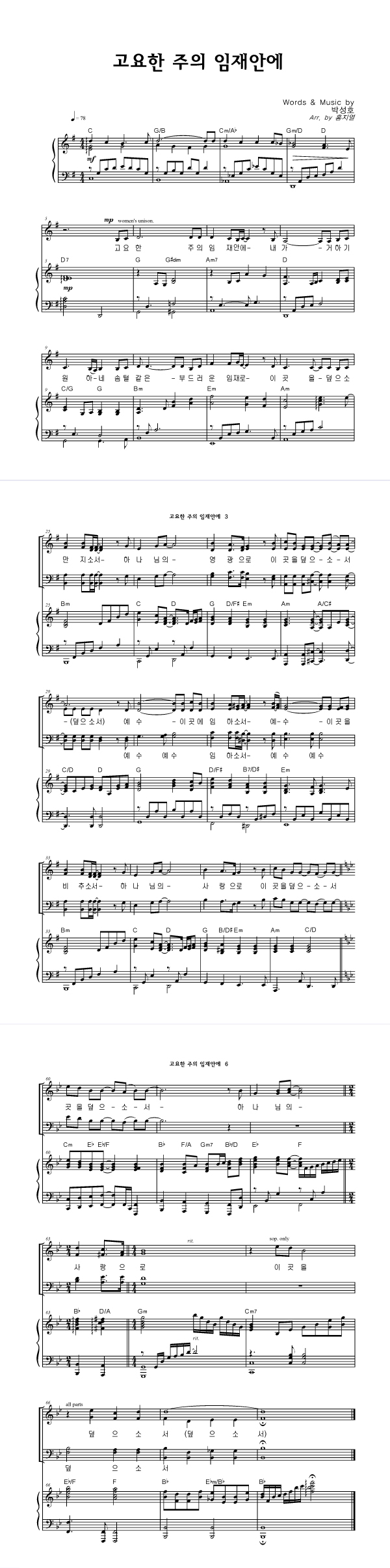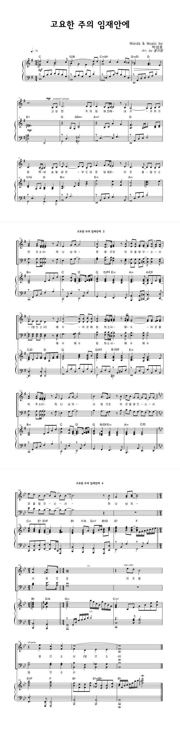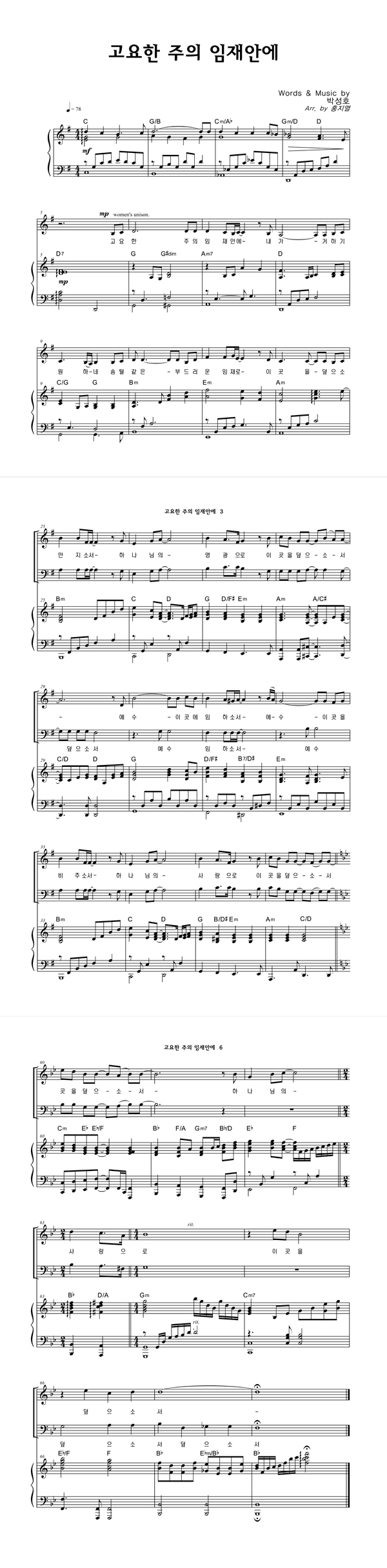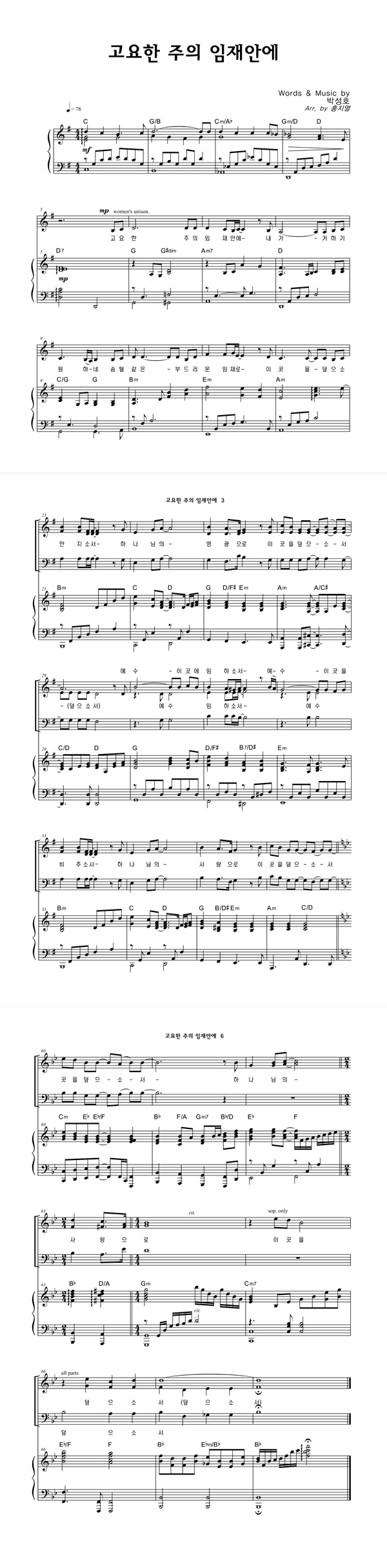 | 고요한 주의 임재안에 | 성가 4부 + 피아노 반주 |