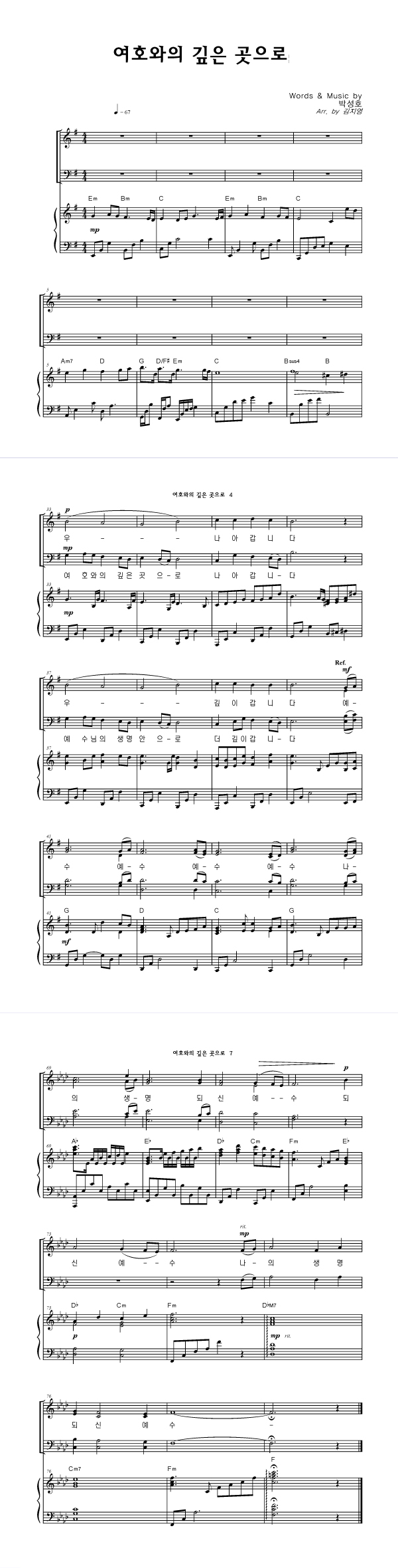 | 여호와의 깊은 곳으로 | 성가 3부 + 피아노 반주 |