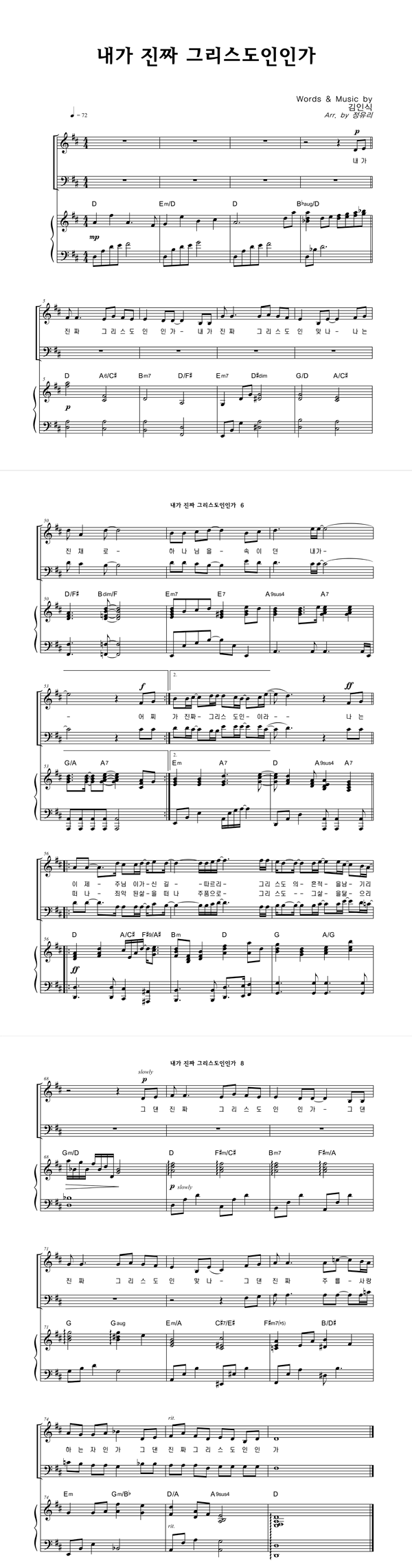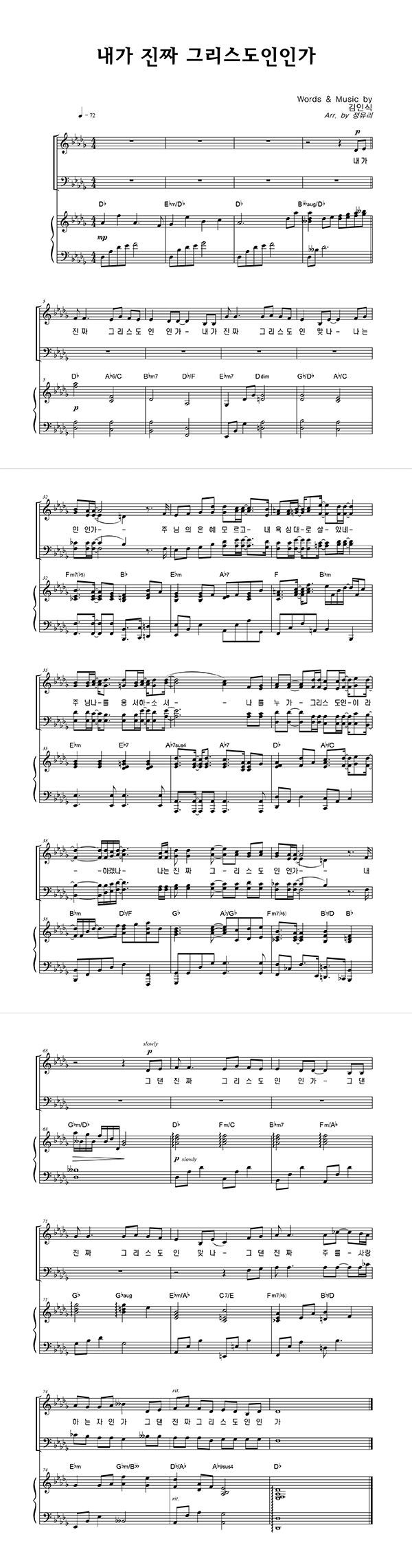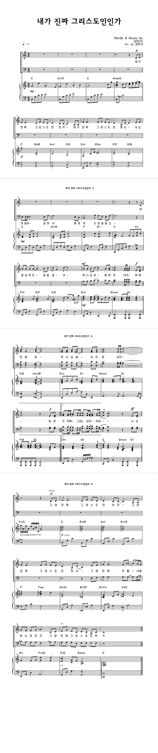 | 내가 진짜 그리스도인인가 | 성가 4부 + 피아노 반주 |