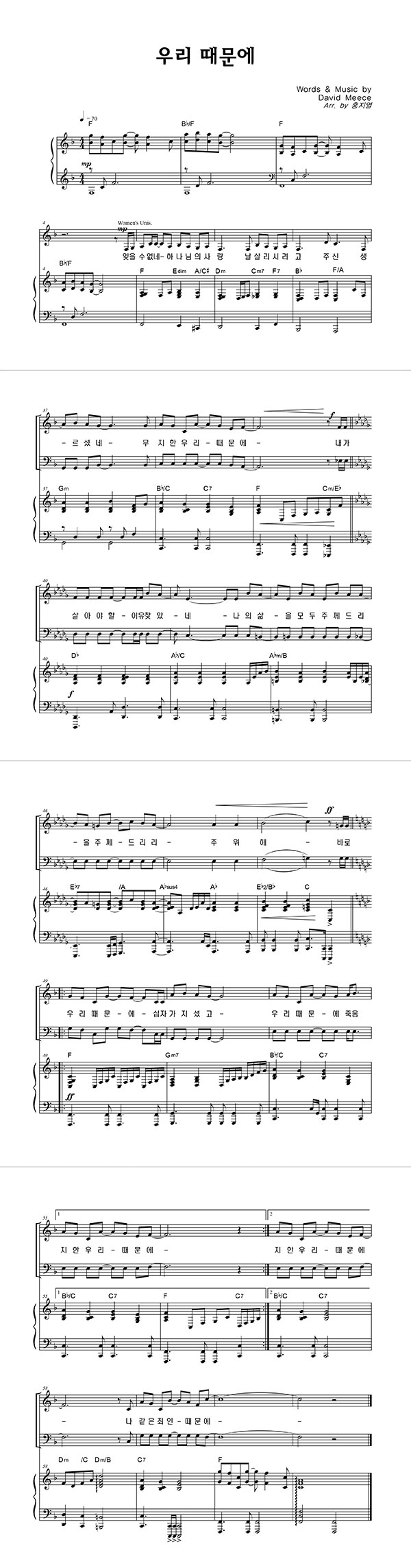 | 우리 때문에 | 성가 2부 + 피아노 반주 |