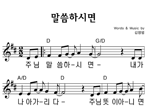 '말씀하시면' 의 다른 악보형식