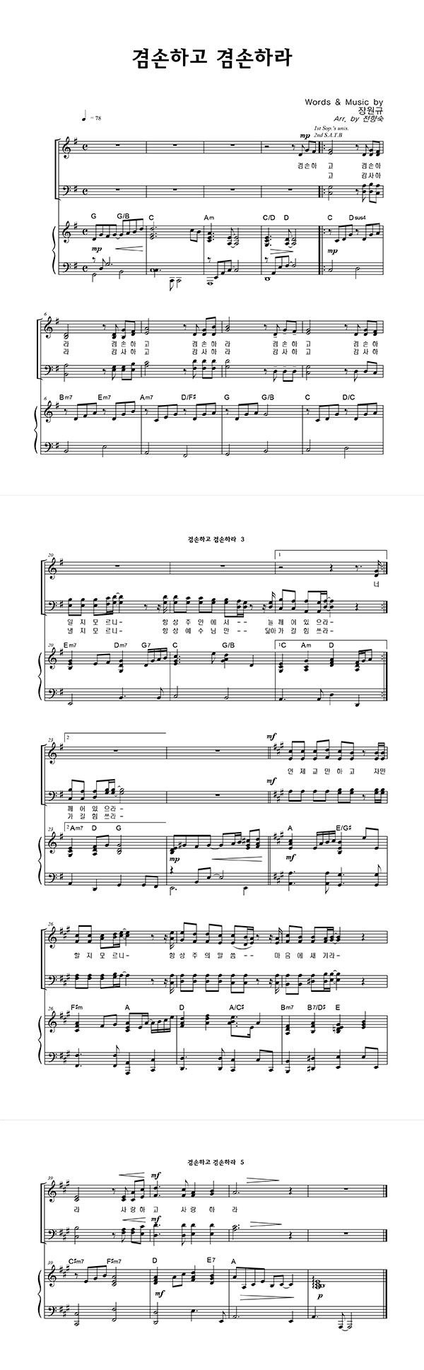 '겸손하고 겸손하라' 의 다른 악보형식
