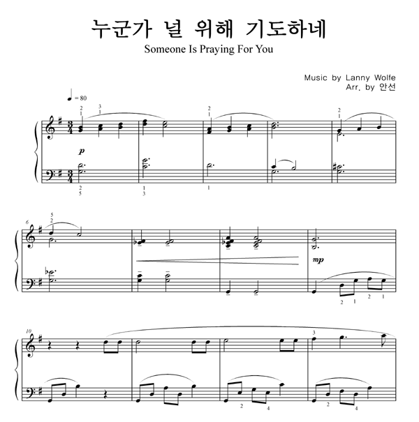 | 누군가 널 위해 기도하네 | 성가 3부 + 피아노 반주 |