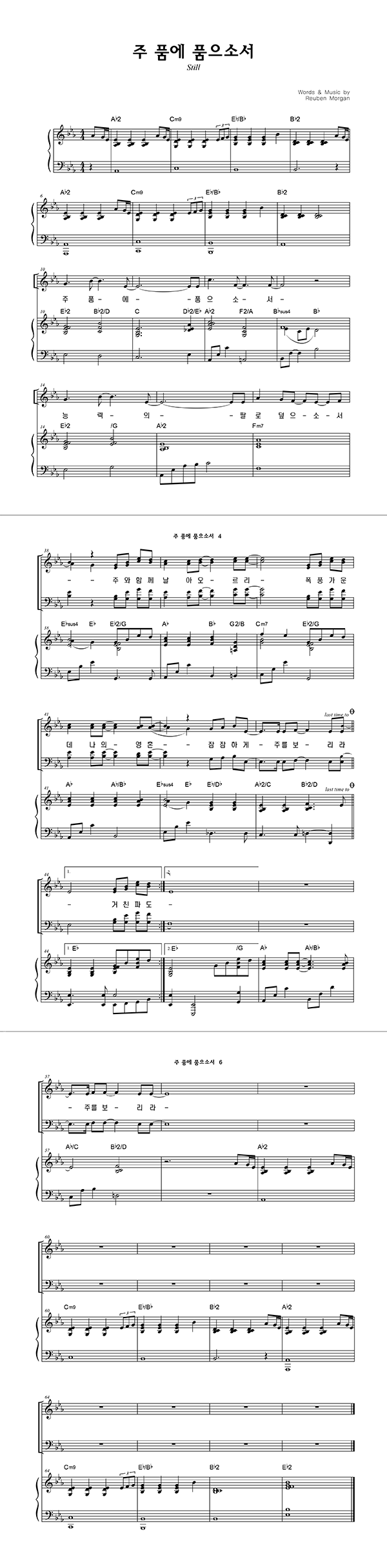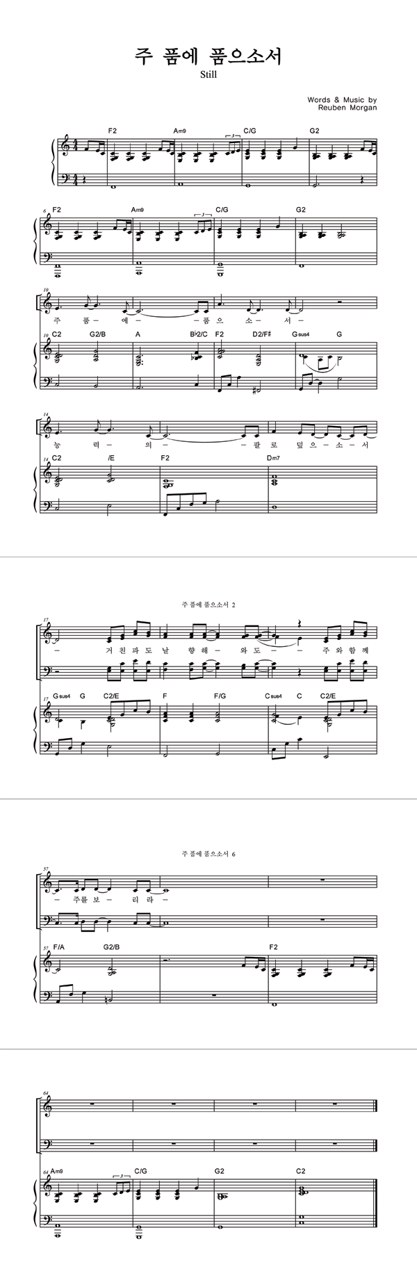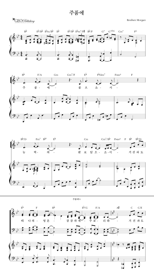 | 주 품에 | 성가 4부 + 피아노 반주 |