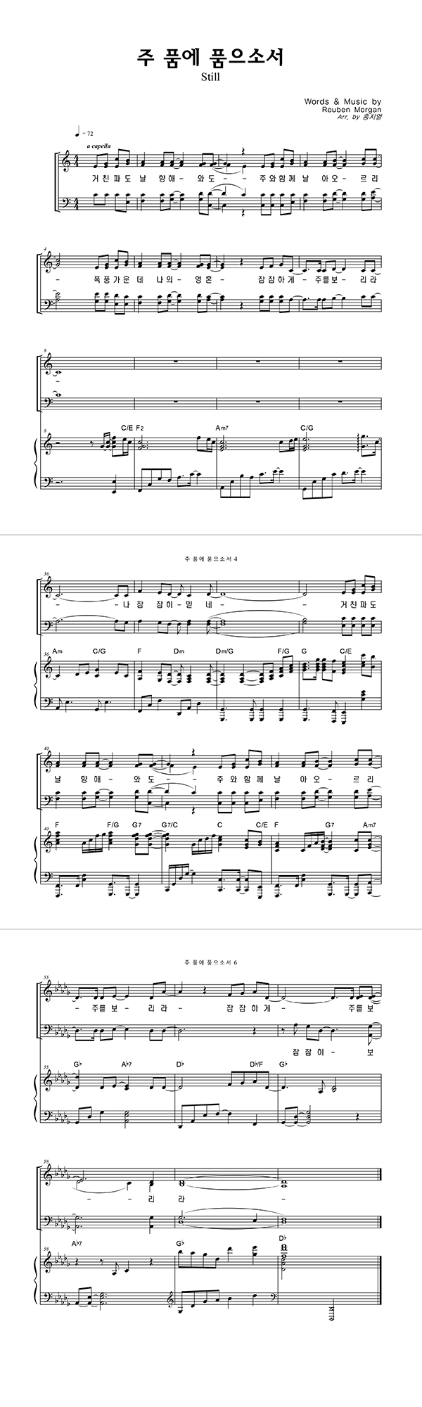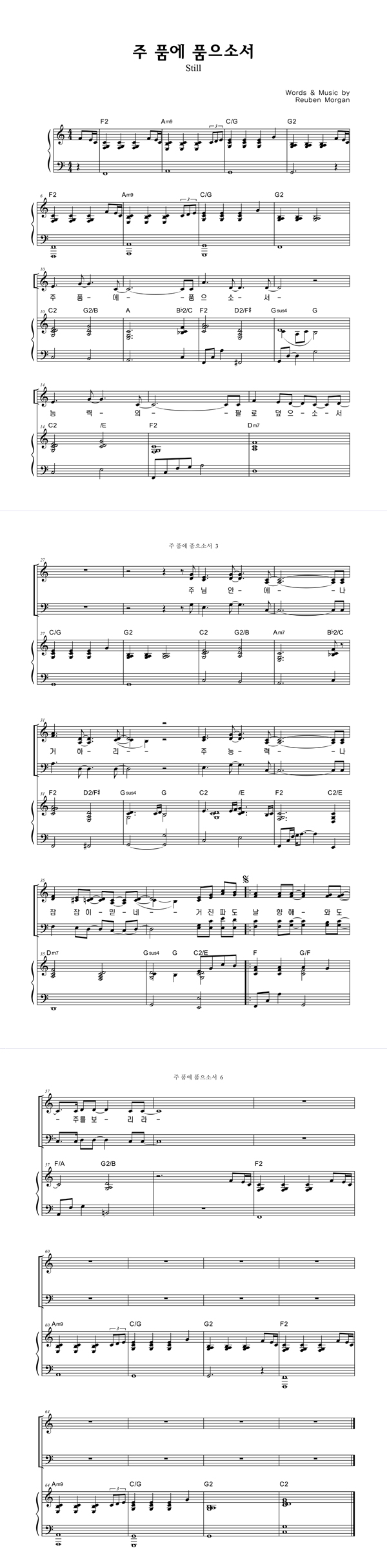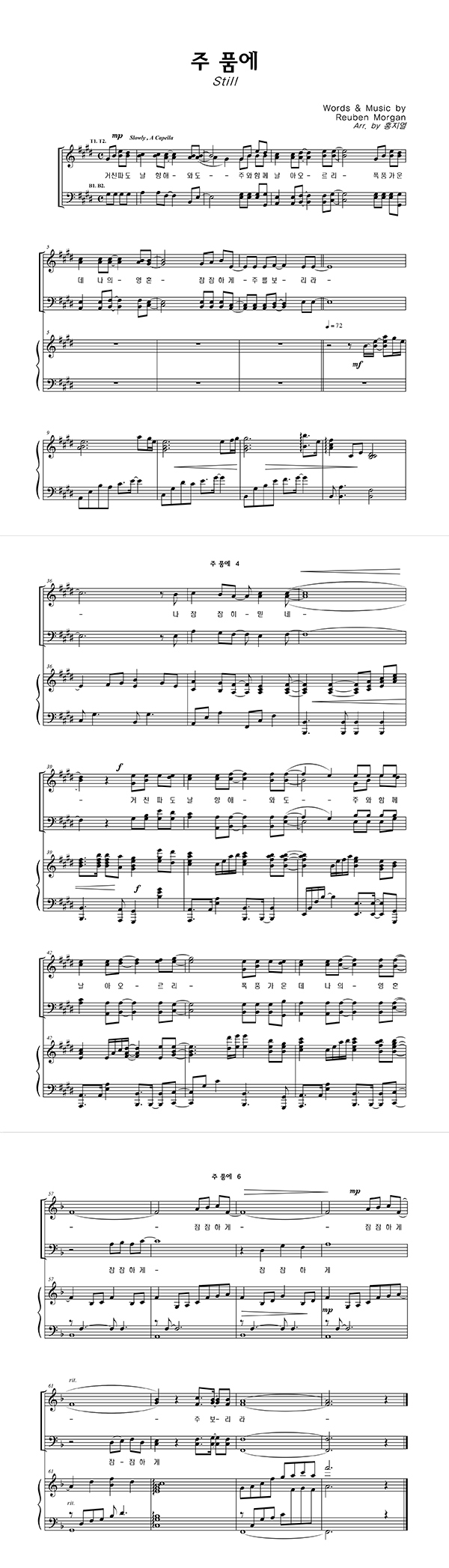 | 주 품에 | 성가 4부 + 피아노 반주 |