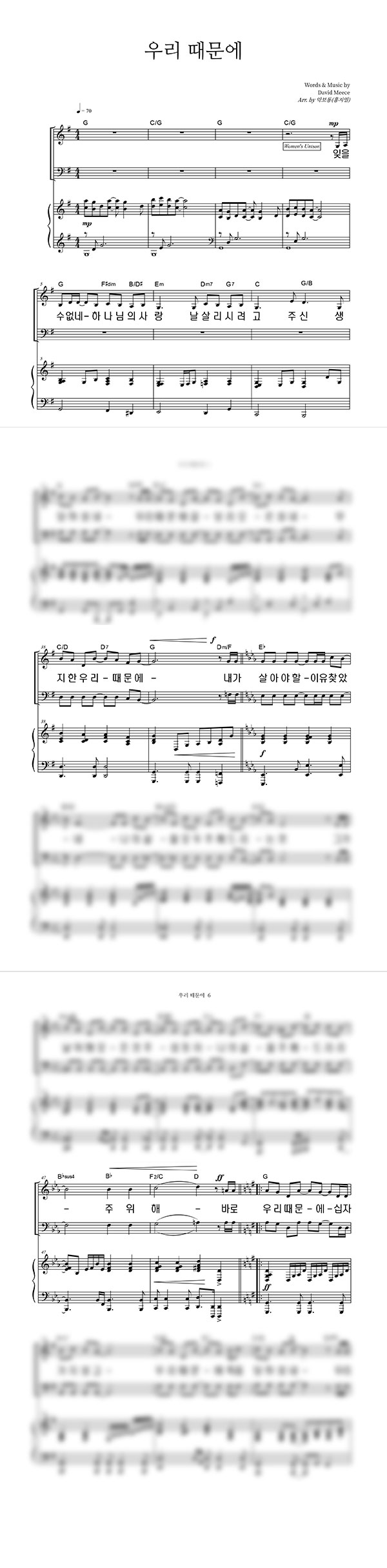 | 우리 때문에 | 성가 2부 + 피아노 반주 |