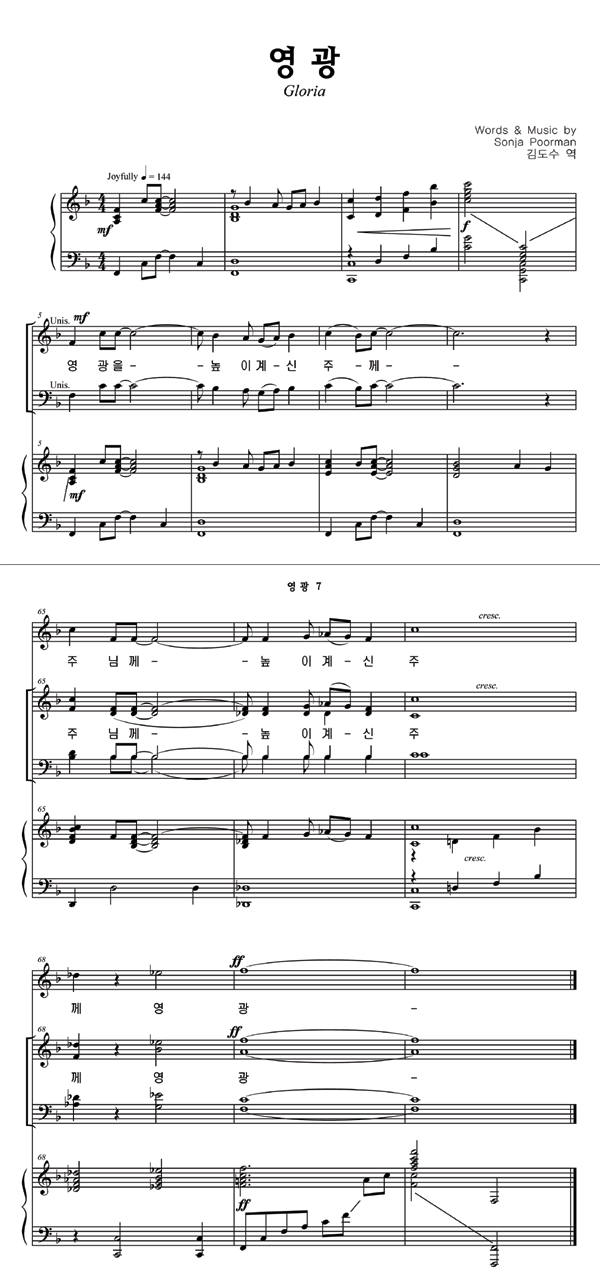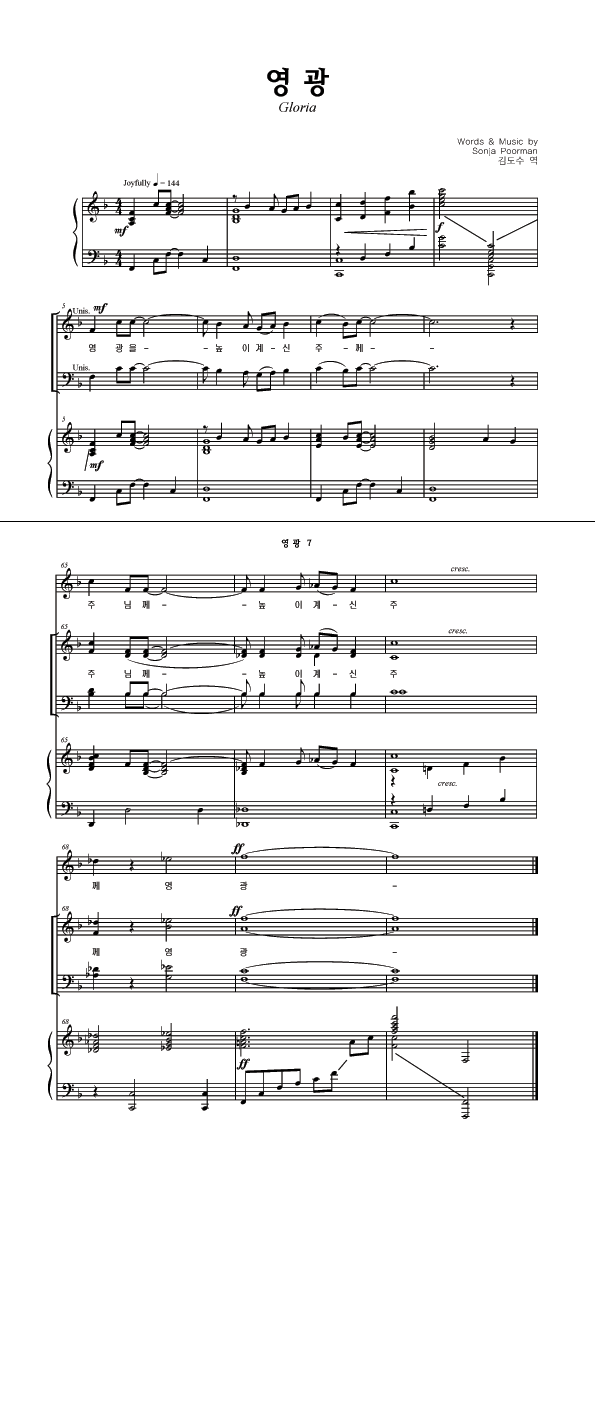 '영광' 의 다른 악보형식