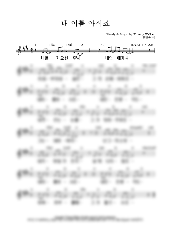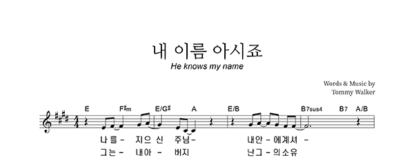 | 내 이름 아시죠 | 성가 4부 + 피아노 반주 |
