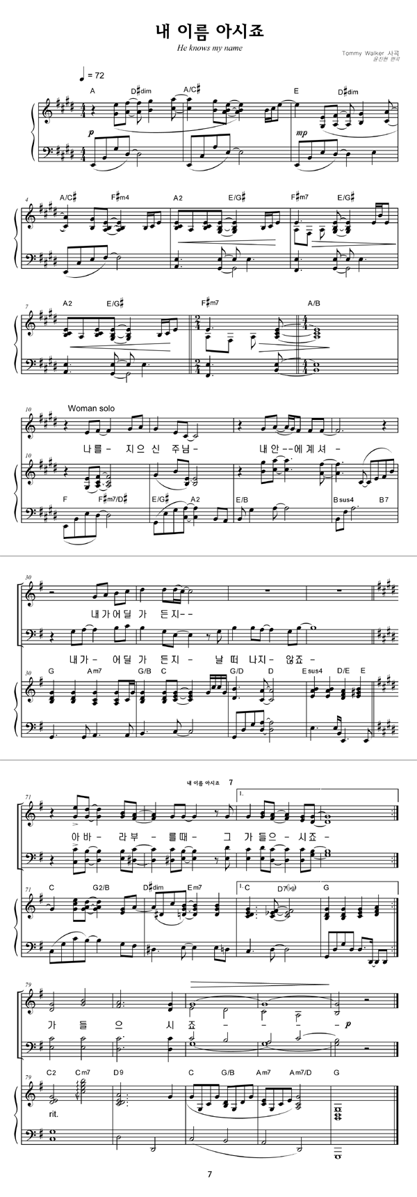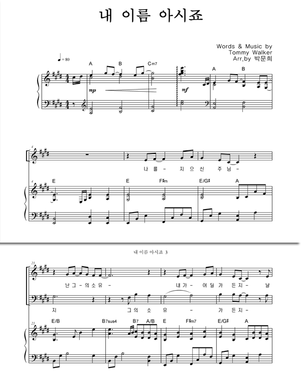 | 내 이름 아시죠 | 성가 2부 + 피아노 반주 |
