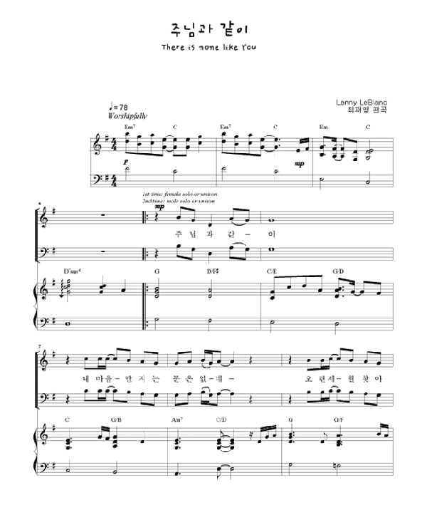 | 주님 한 분 만으로 | 성가 4부 + 피아노 반주 |