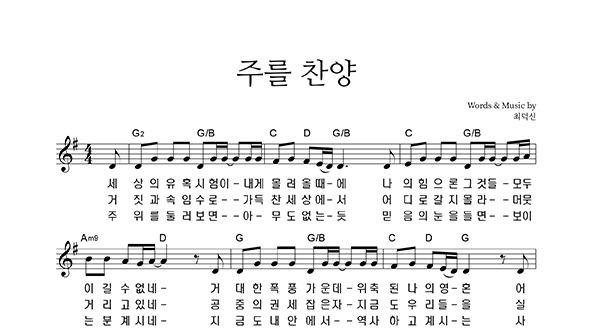 | 주를 찬양 | 성가 4부 + 피아노 반주 |