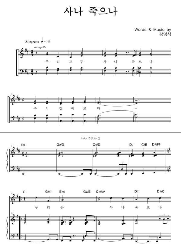 | 사나 죽으나 | 성가 4부 + 피아노 반주 |