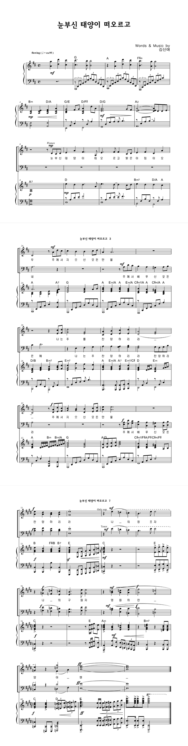 '눈부신 태양이 떠오르고' 의 다른 악보형식