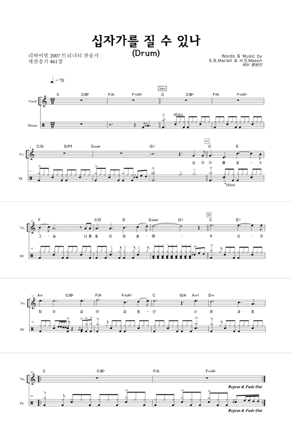 '십자가를 질 수 있나 (찬송가 461장)' 의 다른 악보형식