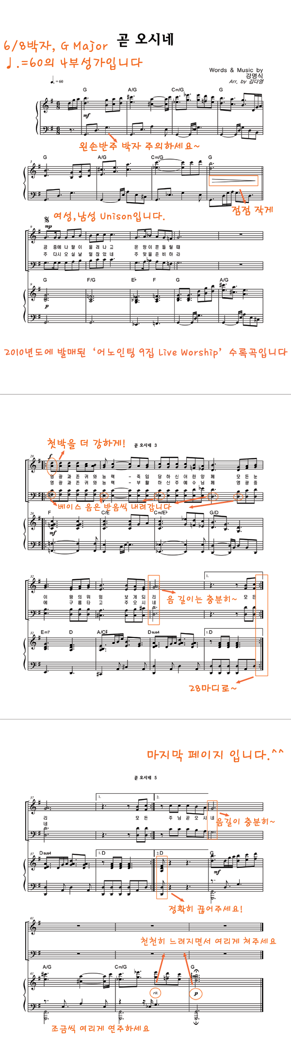 | 곧 오시네 | 성가 4부 + 피아노 반주 |