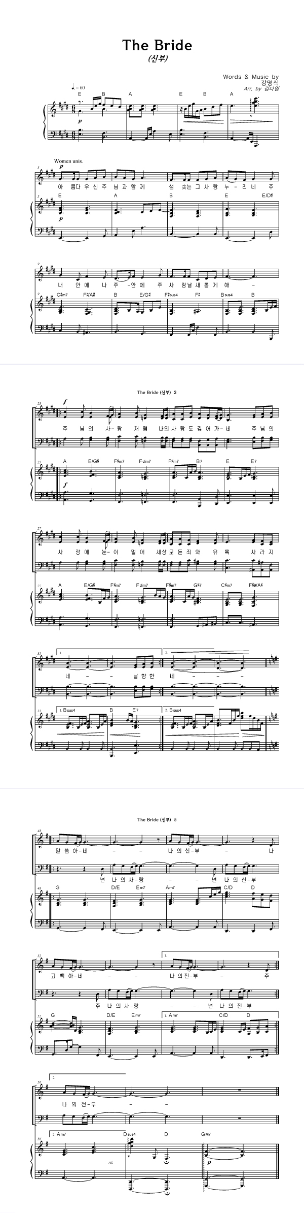 | The Bride(신부) | 성가 3부 + 피아노 반주 |