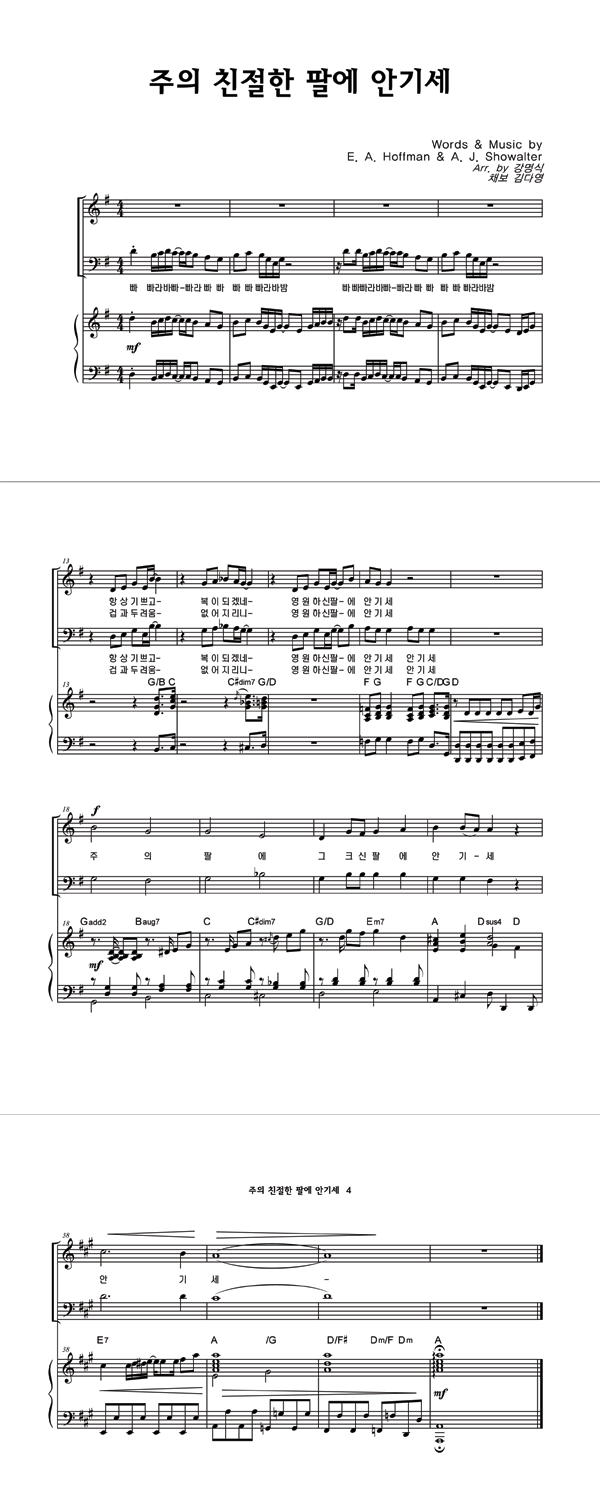 | 주의 친절한 팔에 안기세 | 성가 4부 + 피아노 반주 |