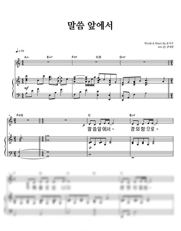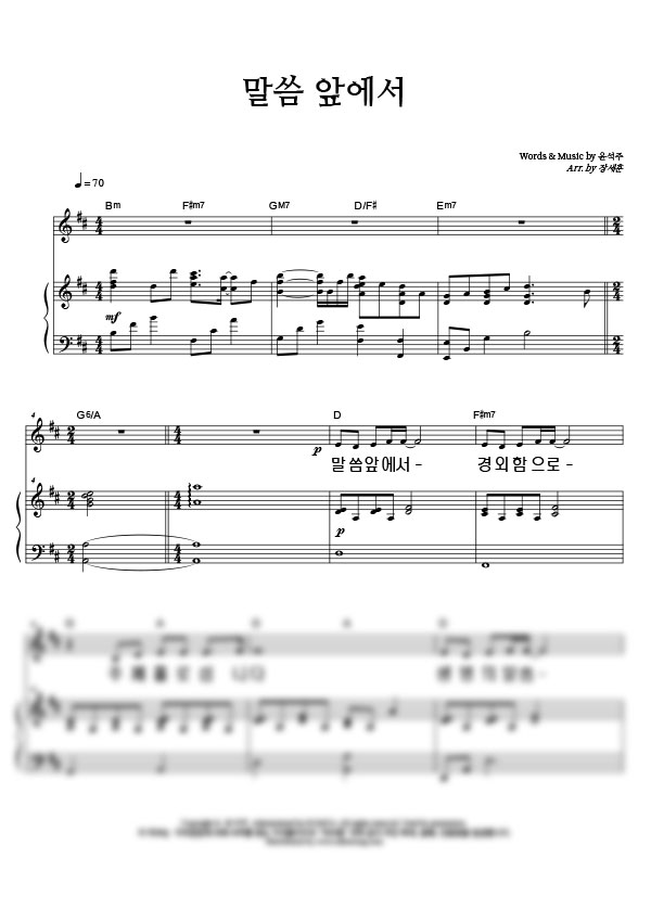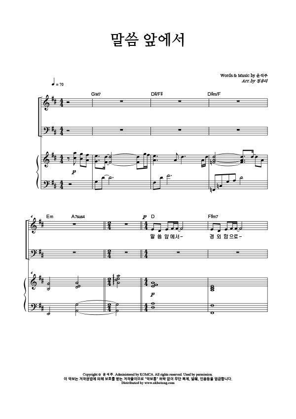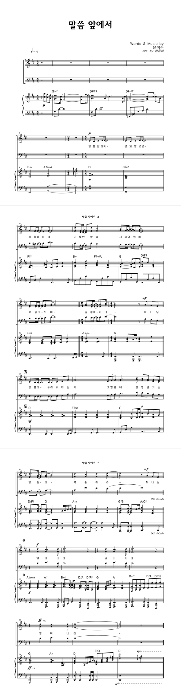 | 말씀 앞에서 | 성가 2부 + 피아노 반주 |