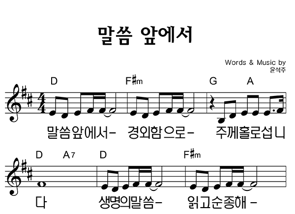 | 말씀 앞에서 | 성가 4부 + 피아노 반주 |