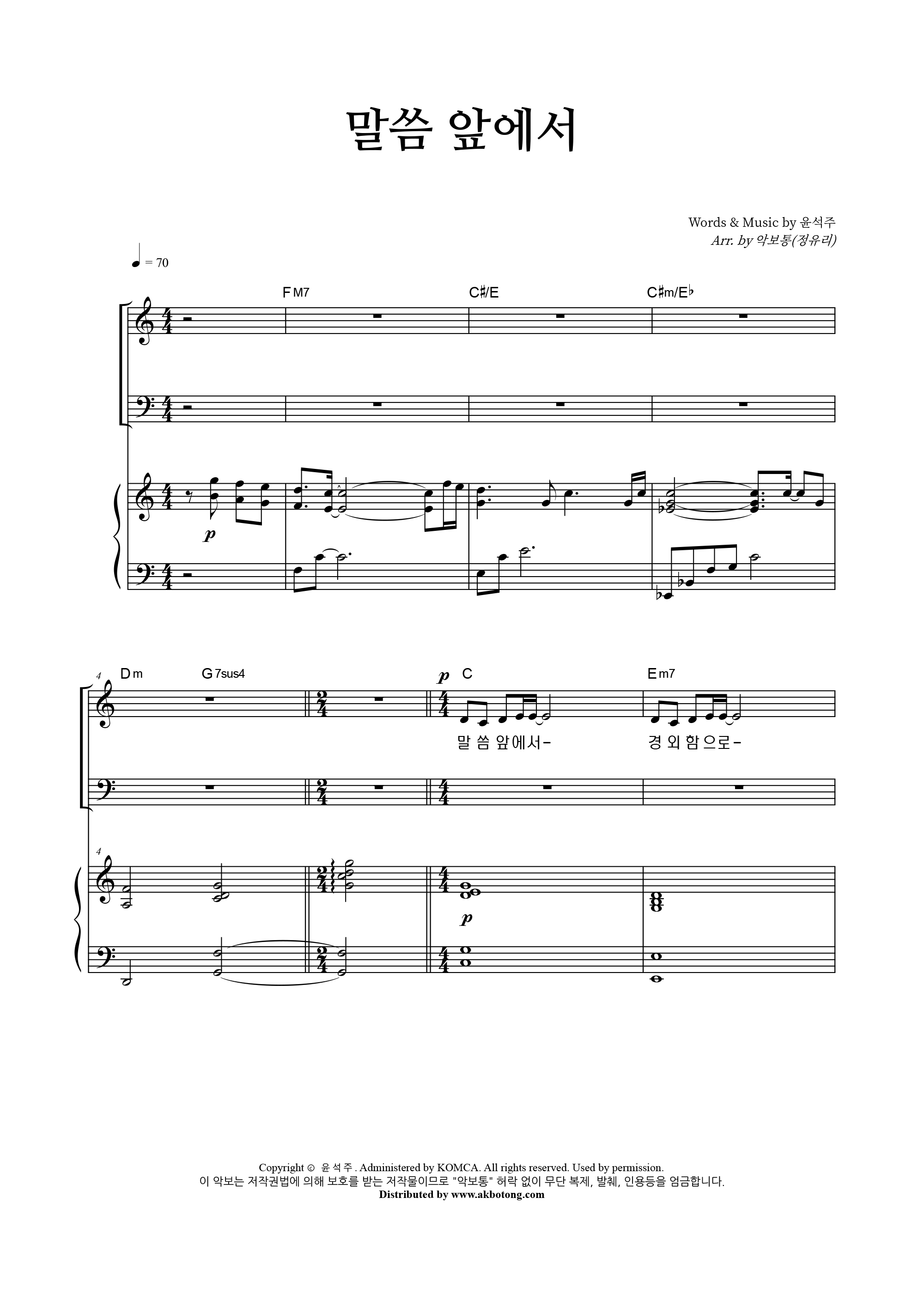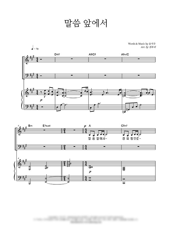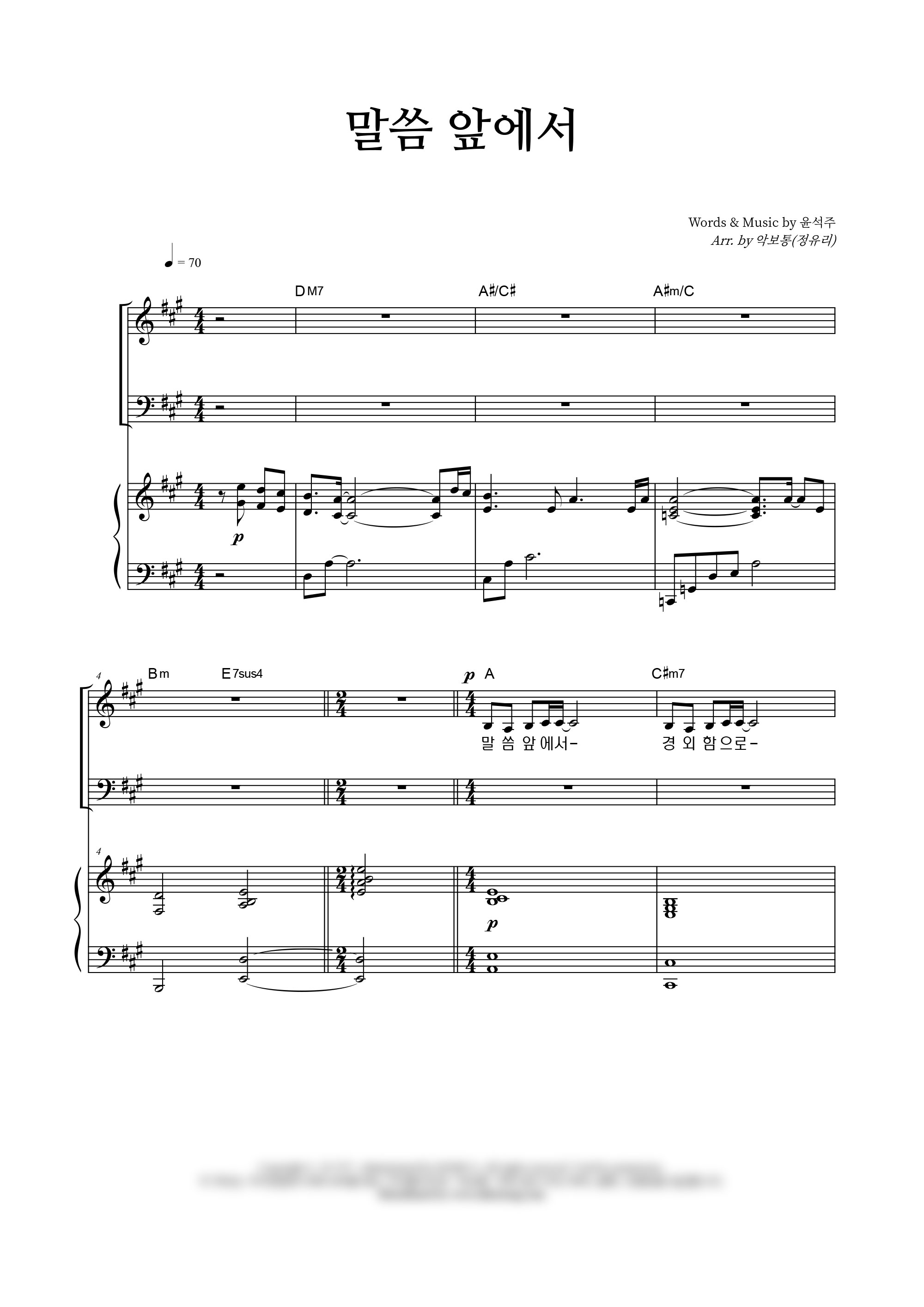 | 말씀 앞에서 | 성가 3부 + 피아노 반주 |