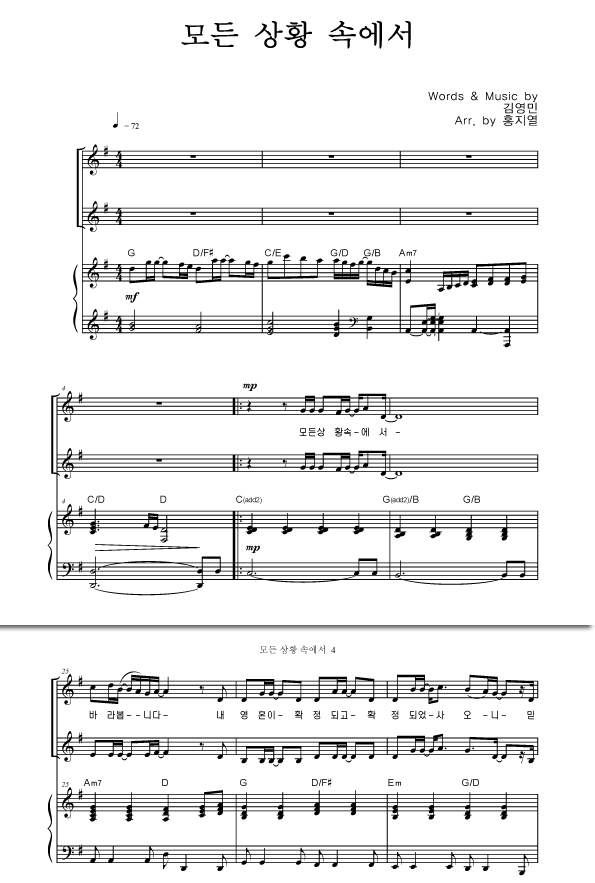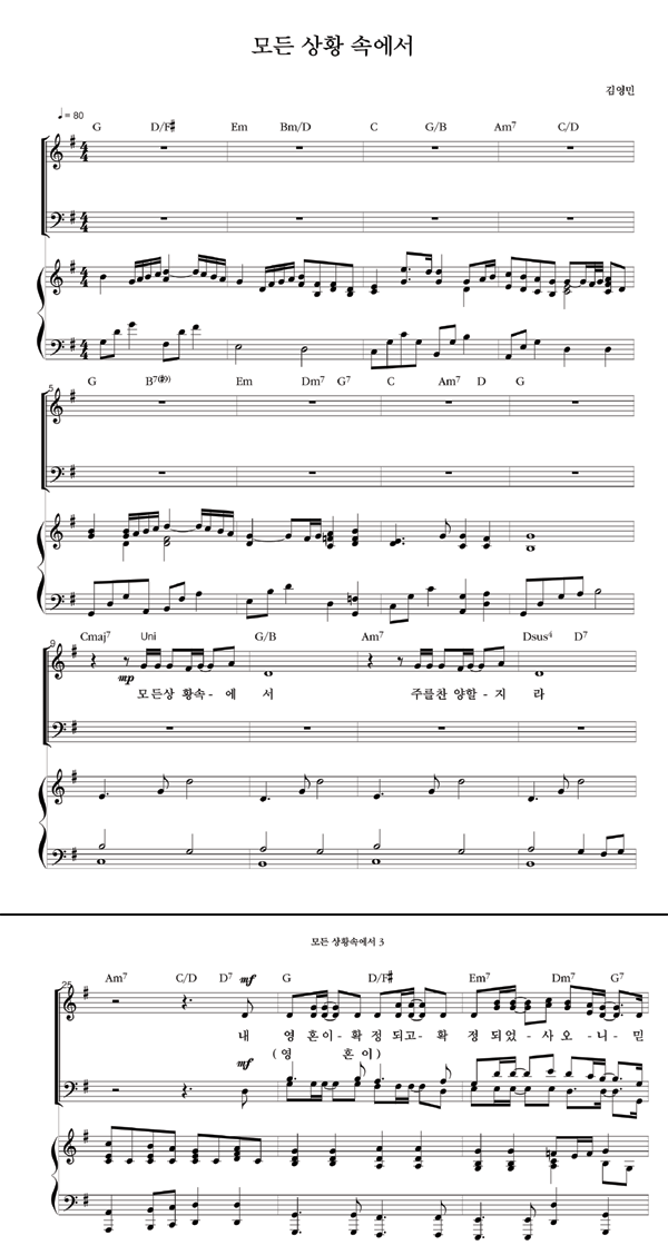 | 모든 상황 속에서 | 성가 4부 + 피아노 반주 |