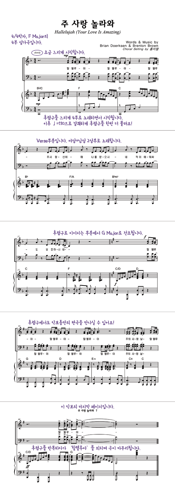 | 주 사랑 놀라와 | 성가 4부 + 피아노 반주 |