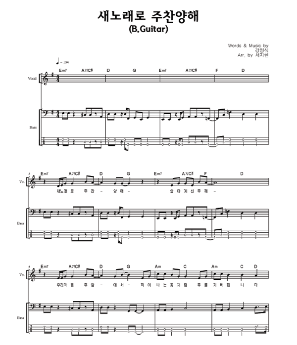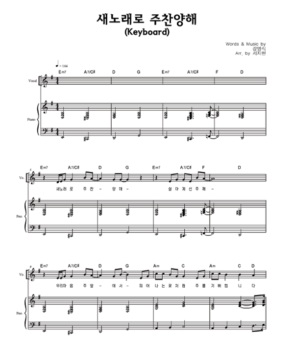 | 새 노래로 주 찬양해 | 성가 4부 + 피아노 반주 |
