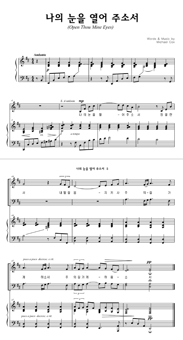 '나의 눈을 열어 주소서' 의 다른 악보형식
