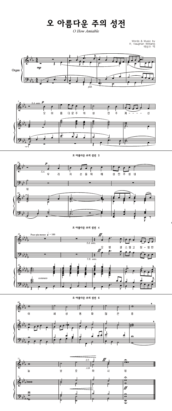 '오 아름다운 주의 성전' 의 다른 악보형식