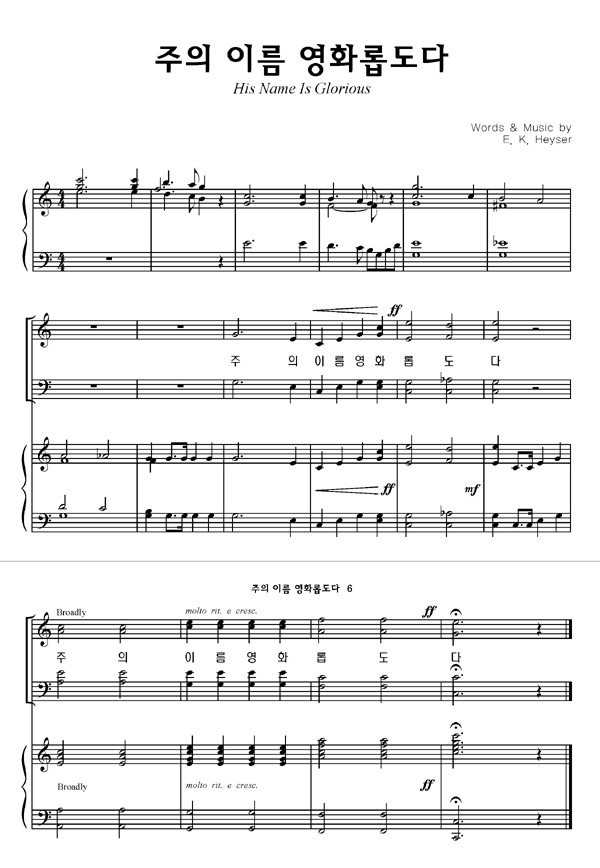 '주의 이름 영화롭도다' 의 다른 악보형식