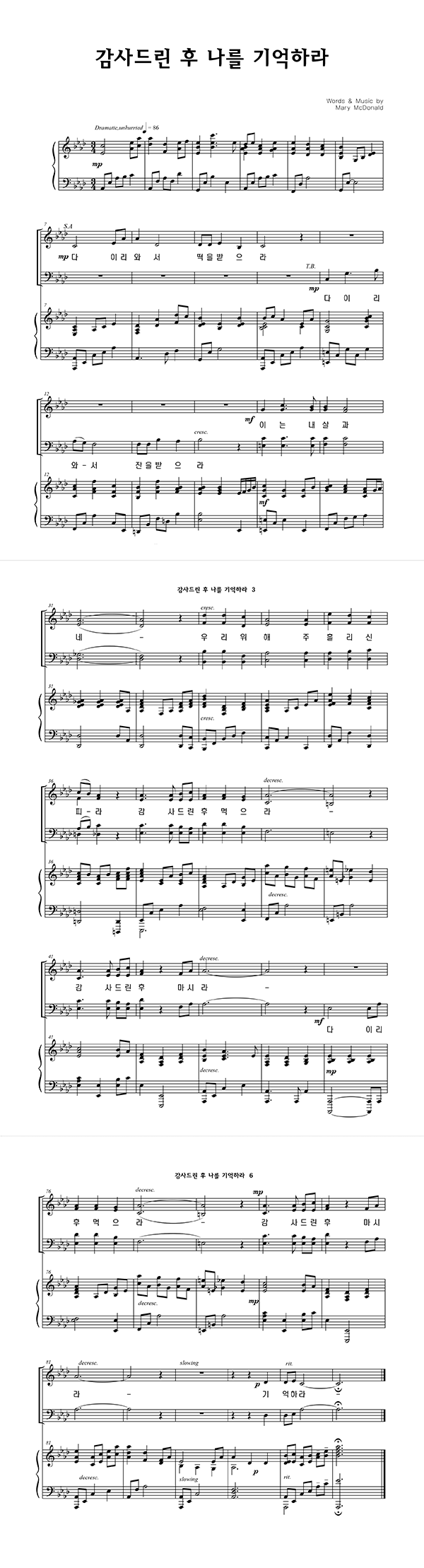 '감사드린 후 나를 기억하라' 의 다른 악보형식