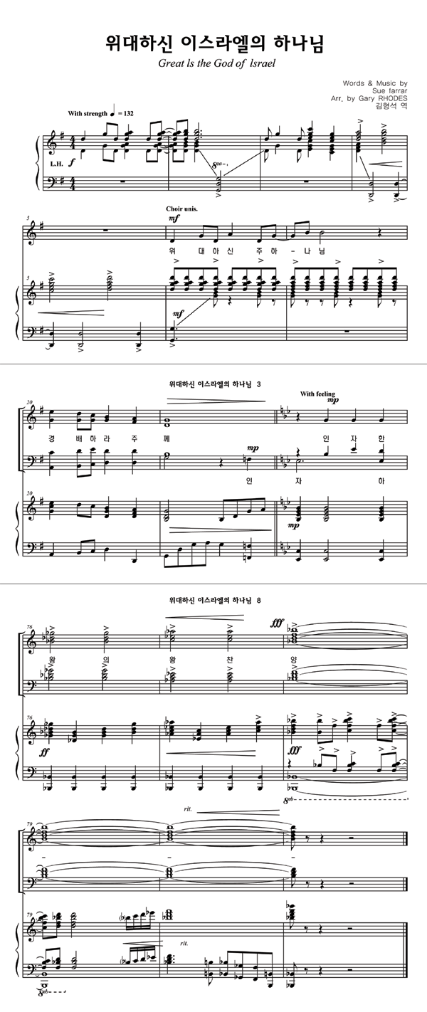 '위대하신 이스라엘의 하나님' 의 다른 악보형식