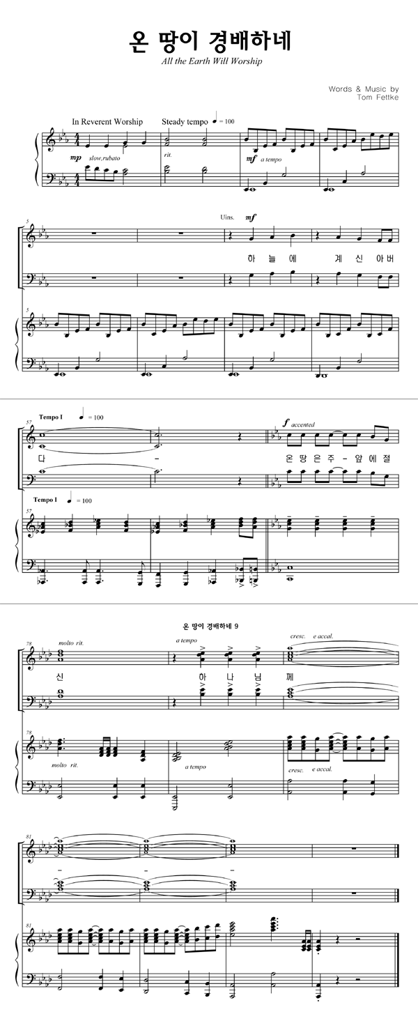 '온 땅이 경배하네' 의 다른 악보형식