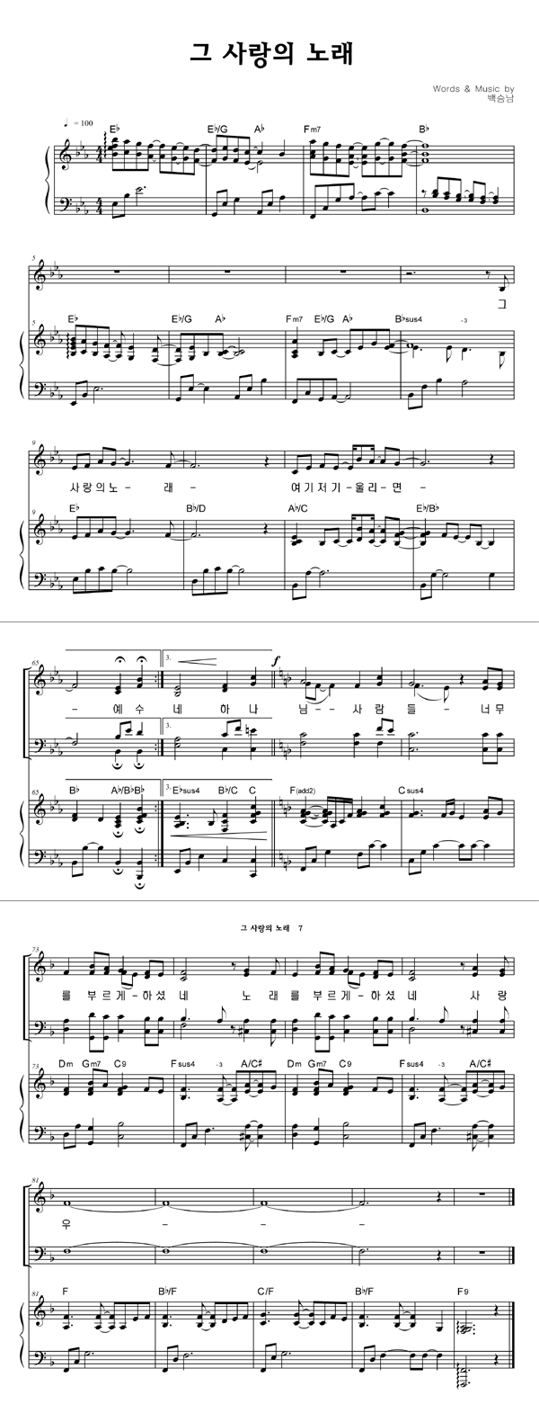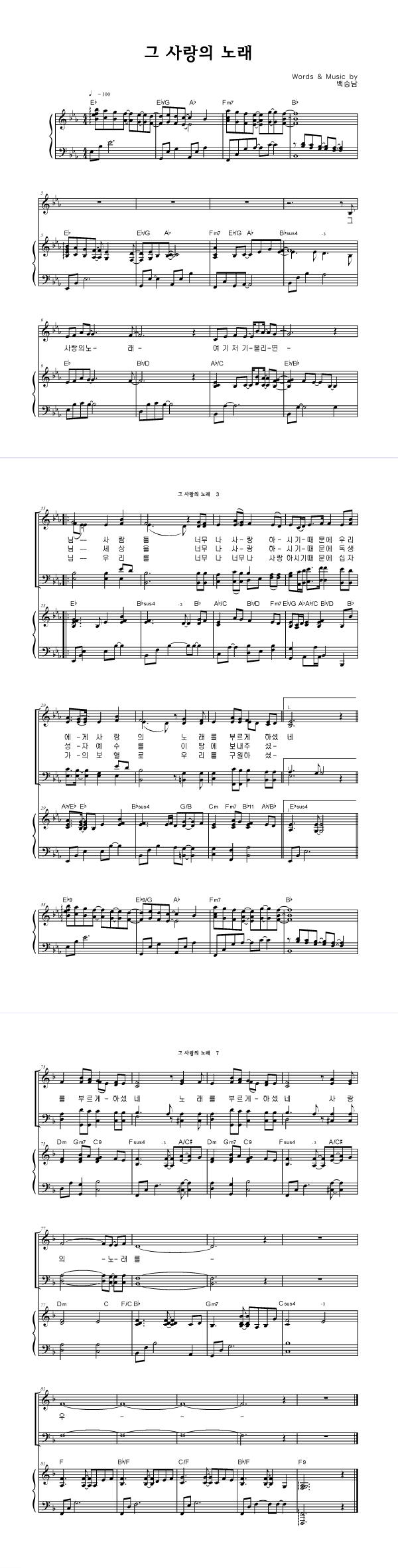| 그 사랑의 노래 | 성가 4부 + 피아노 반주 |