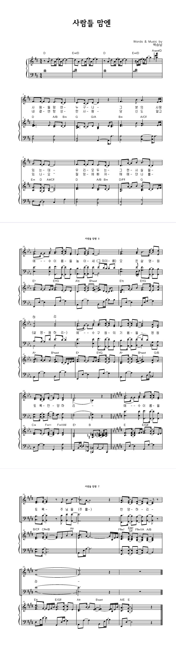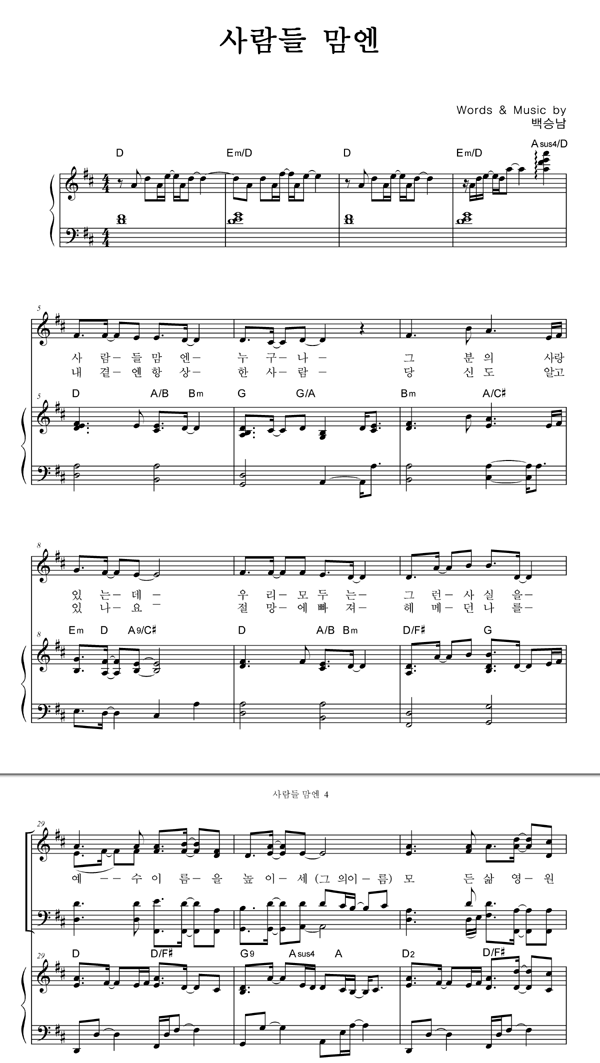 | 사람들 맘엔 | 성가 4부 + 피아노 반주 |