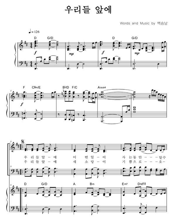 | 우리들 앞에 | 성가 2부 + 피아노 반주 |